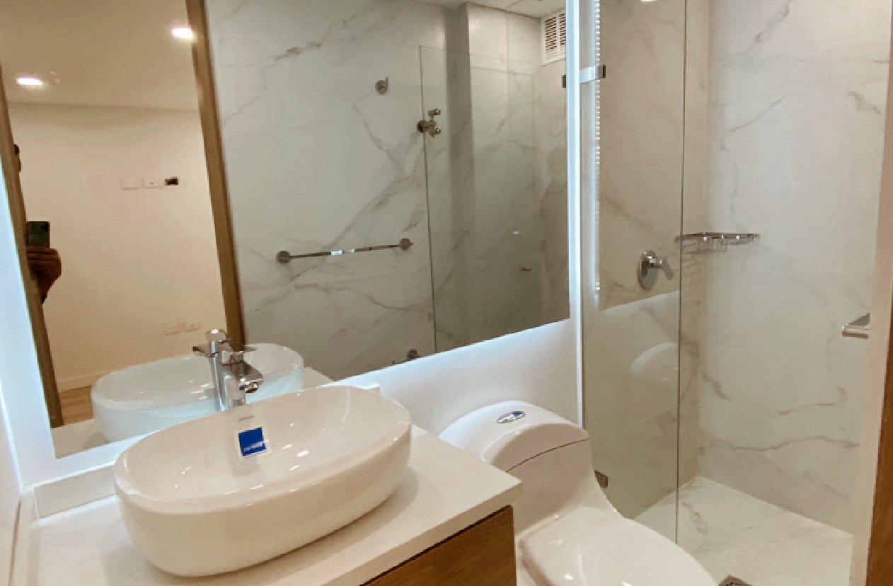 Optimización de áreas: convertimos el antiguo patio en el nuevo baño de la habitación principal, y el antiguo baño en el actual walk-in closet. Además, creamos un nuevo baño auxiliar para las habitaciones secundarias.