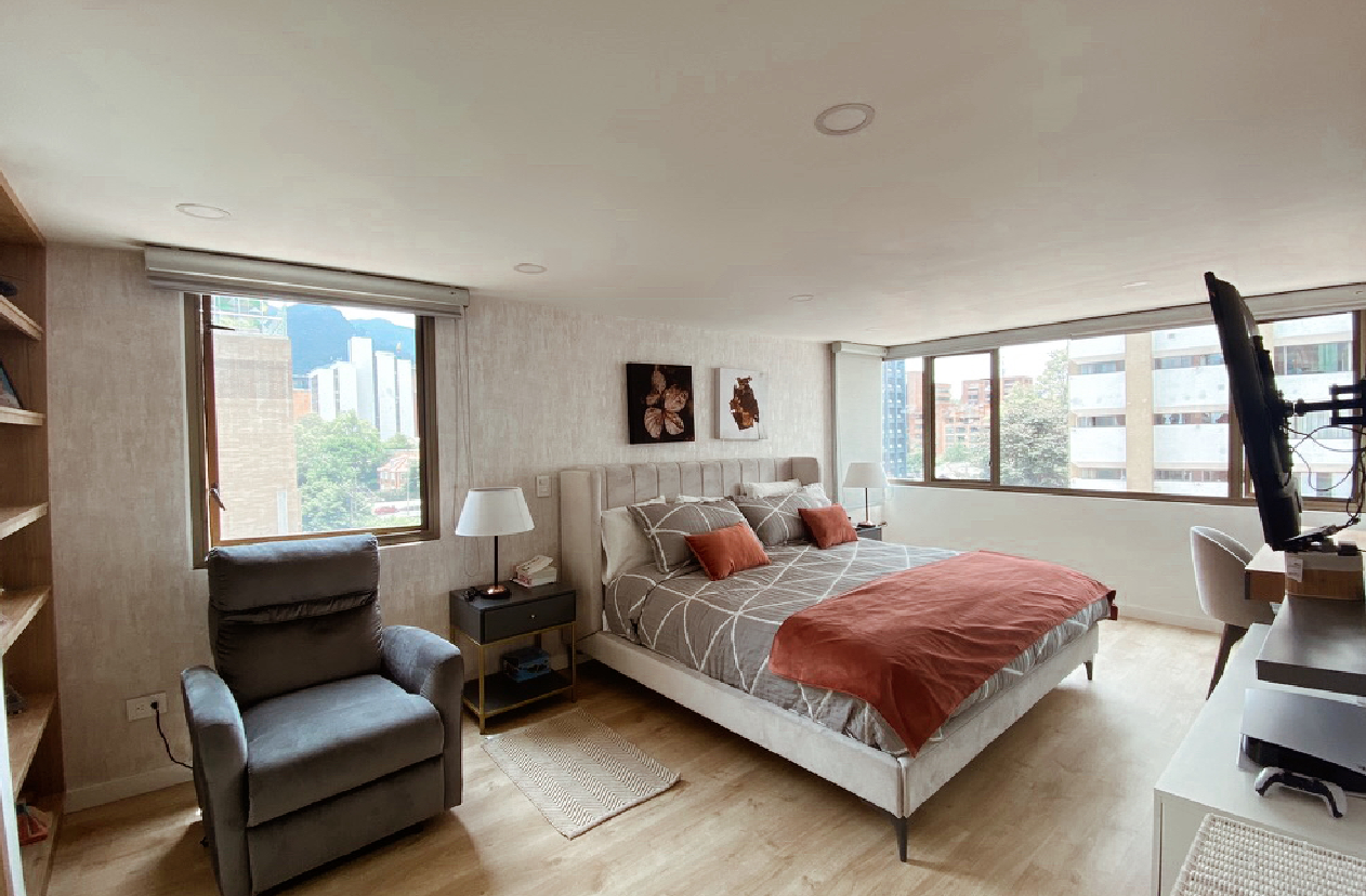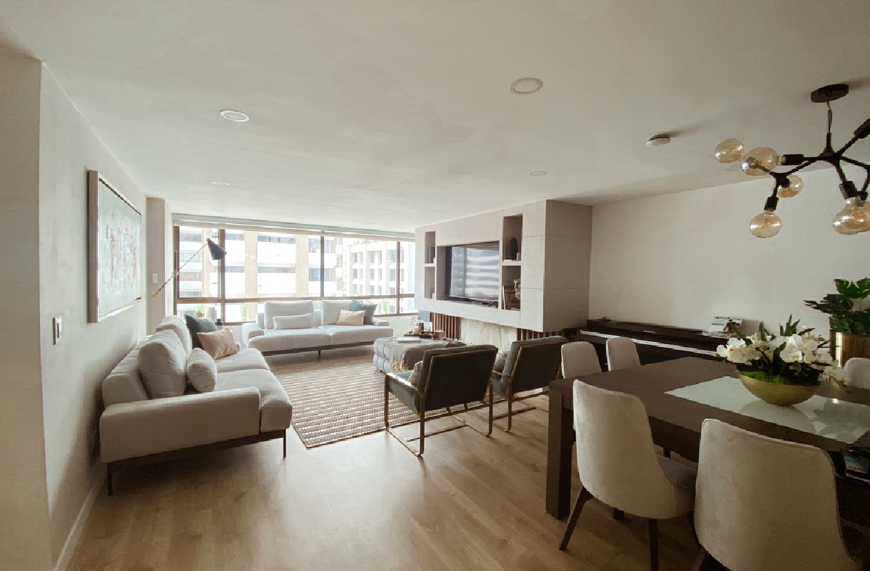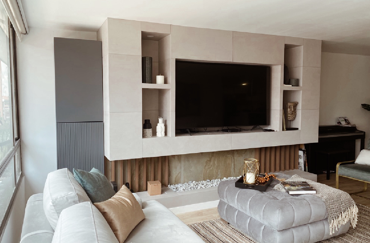Para este apartamento utilizamos una paleta neutra inspirada en el estilo japandi. Le dimos vida y color con el mobiliario y la decoración final, proyectando la personalidad de cada integrante de la familia.